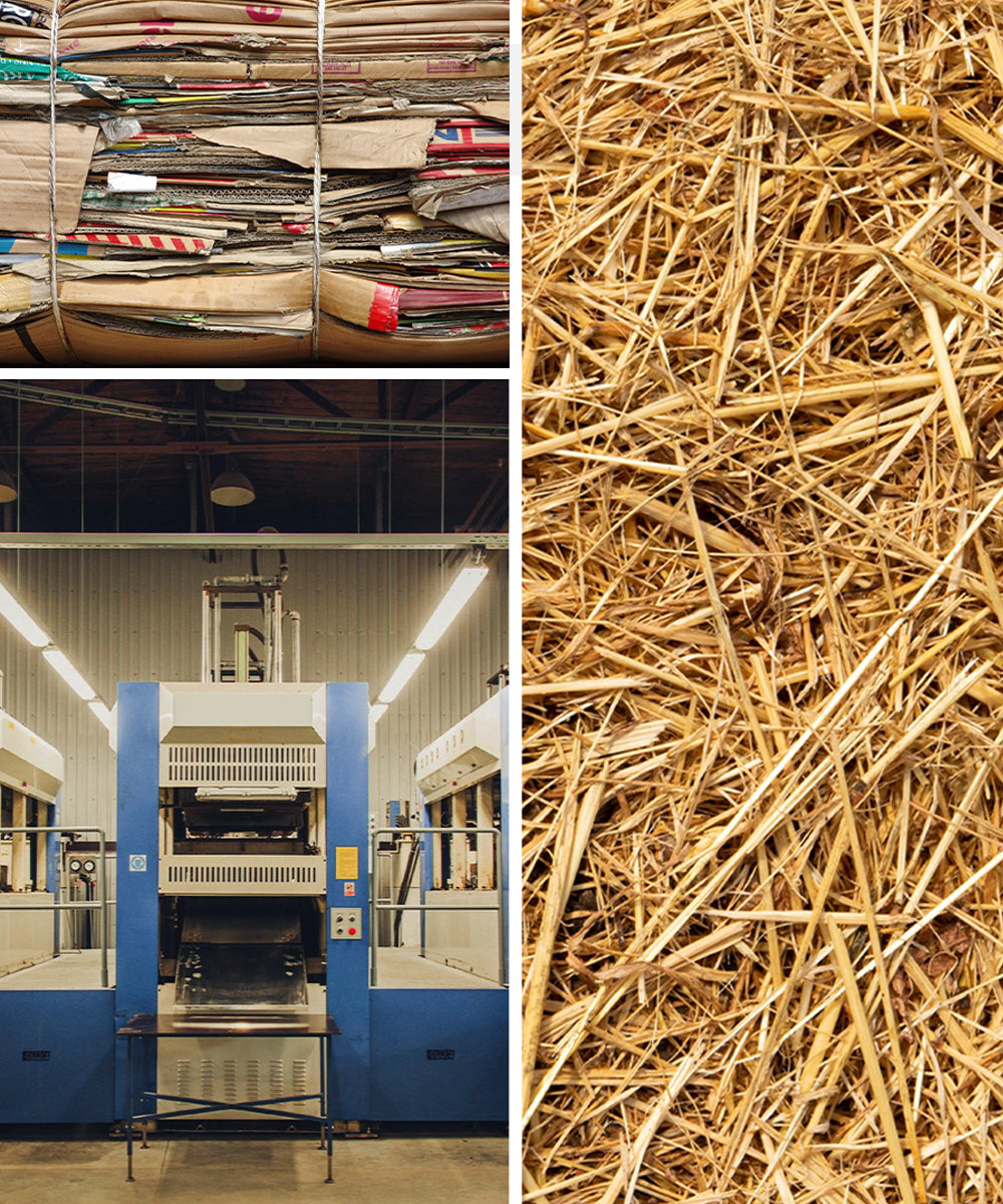 Katzentoiletten und Futternäpfe werden aus 100 % recyceltem, biologisch abbaubarem Papier hergestellt. Wir produzieren umweltfreundliche Produkte, die recyceltem Papier neues Leben schenken.
