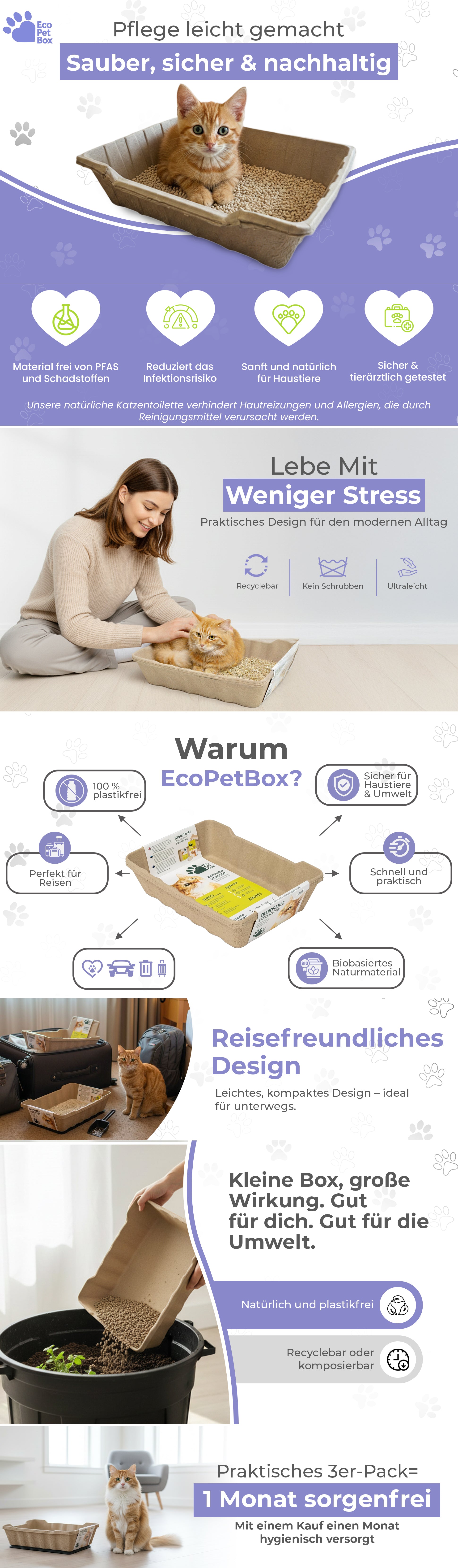 100% environmentally friendly and sustainable: made from recycled paper, completely biodegradable. No +100 year plastic load. Easy disposal via household waste or compost - good for your cat and the planet.